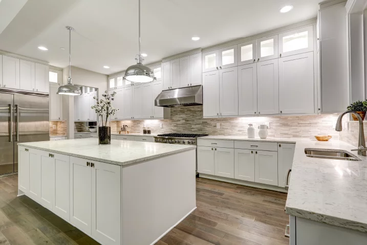 One of the biggest benefits of the shaker style is that the cabinets have nearly endless uses. While they tend to be more popular in kitchen design, a white shaker cabinet door will add clean elegance to a bathroom. That being said, we’ll talk here about some of the different ways you can implement a shaker cabinet into your kitchen.