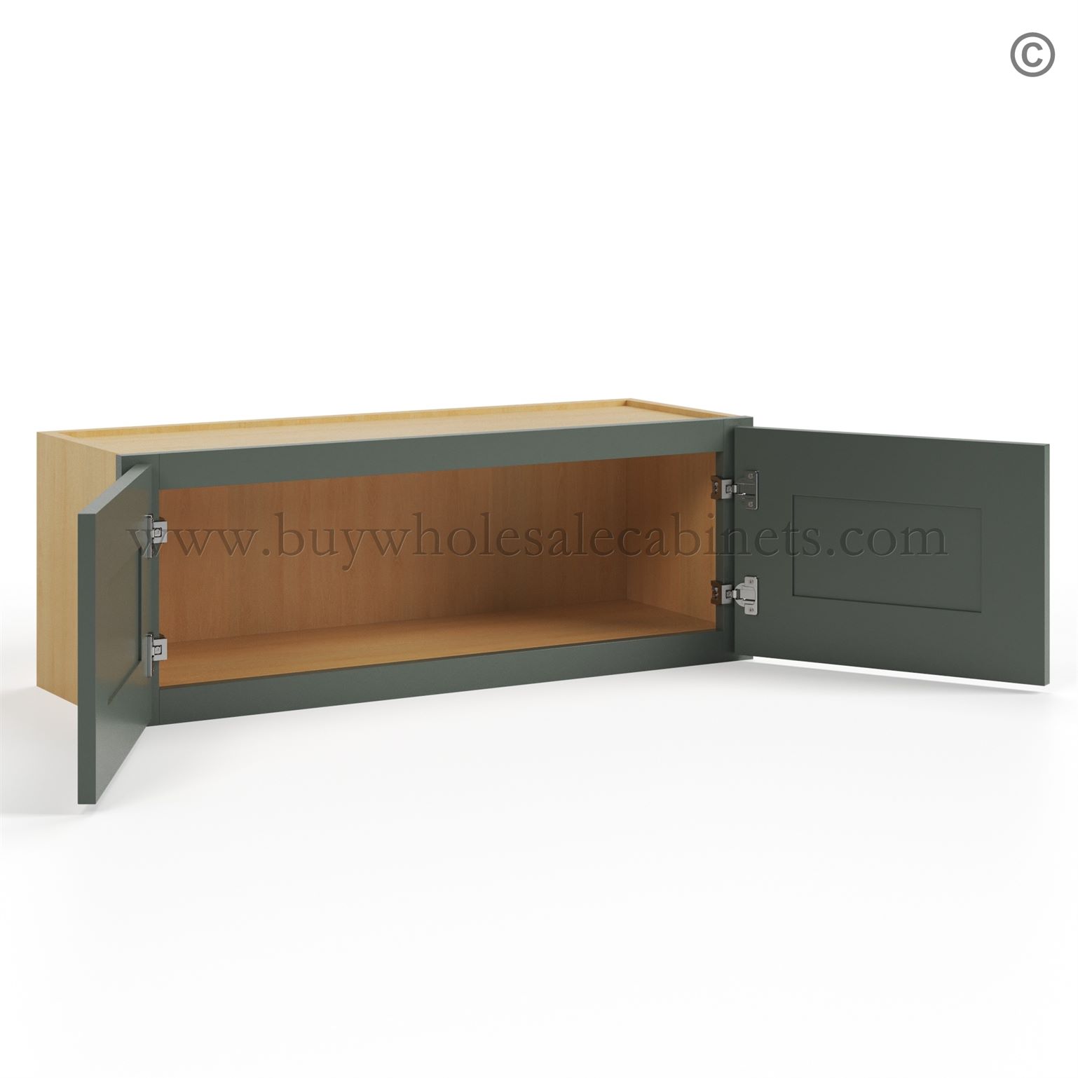Buy Wholesale Cabinets Green Shaker 12″ Double Wall Cabinet is available in 3 sizes.