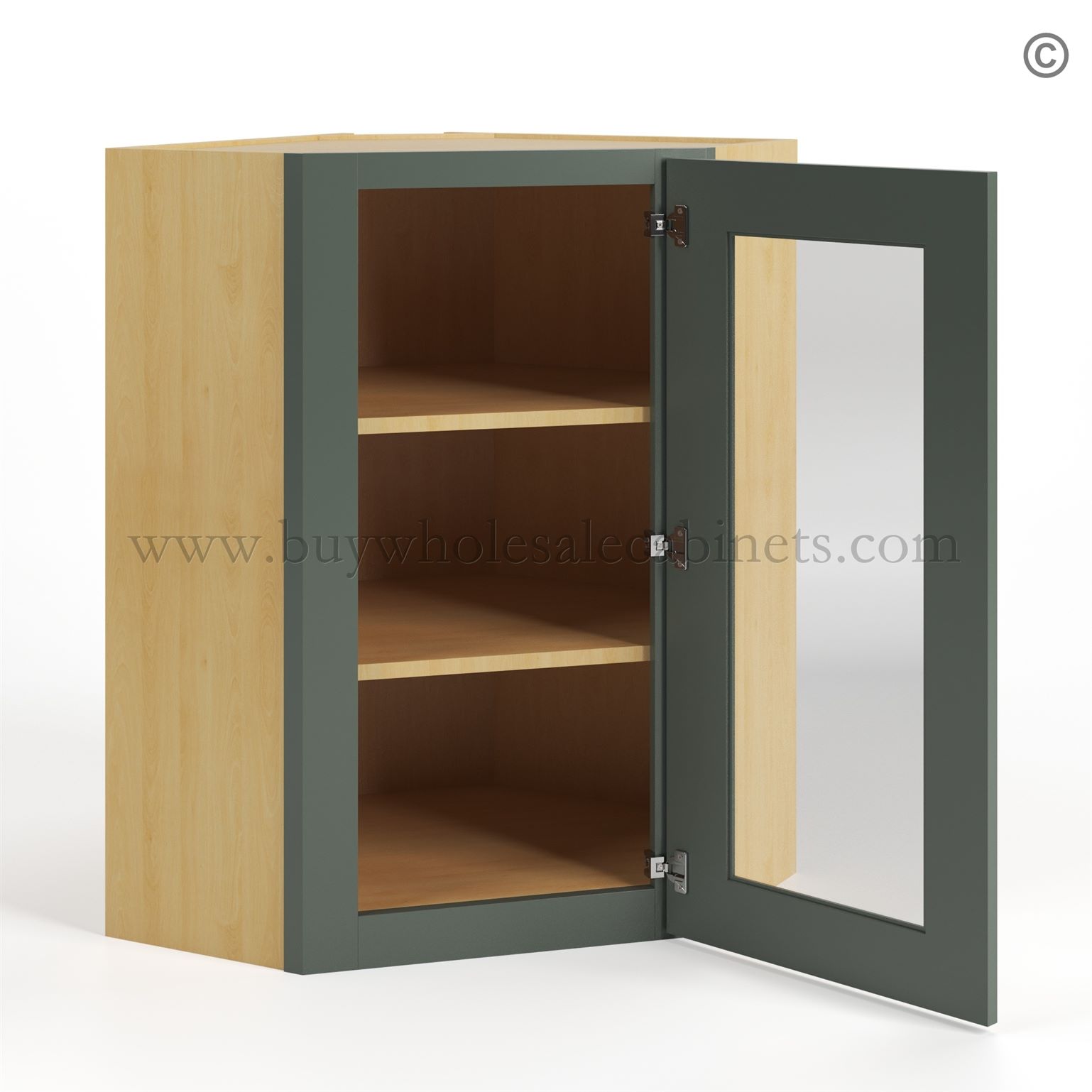 Green Shaker 24 Diagonal Corner Wall Cabinet with Glass Door