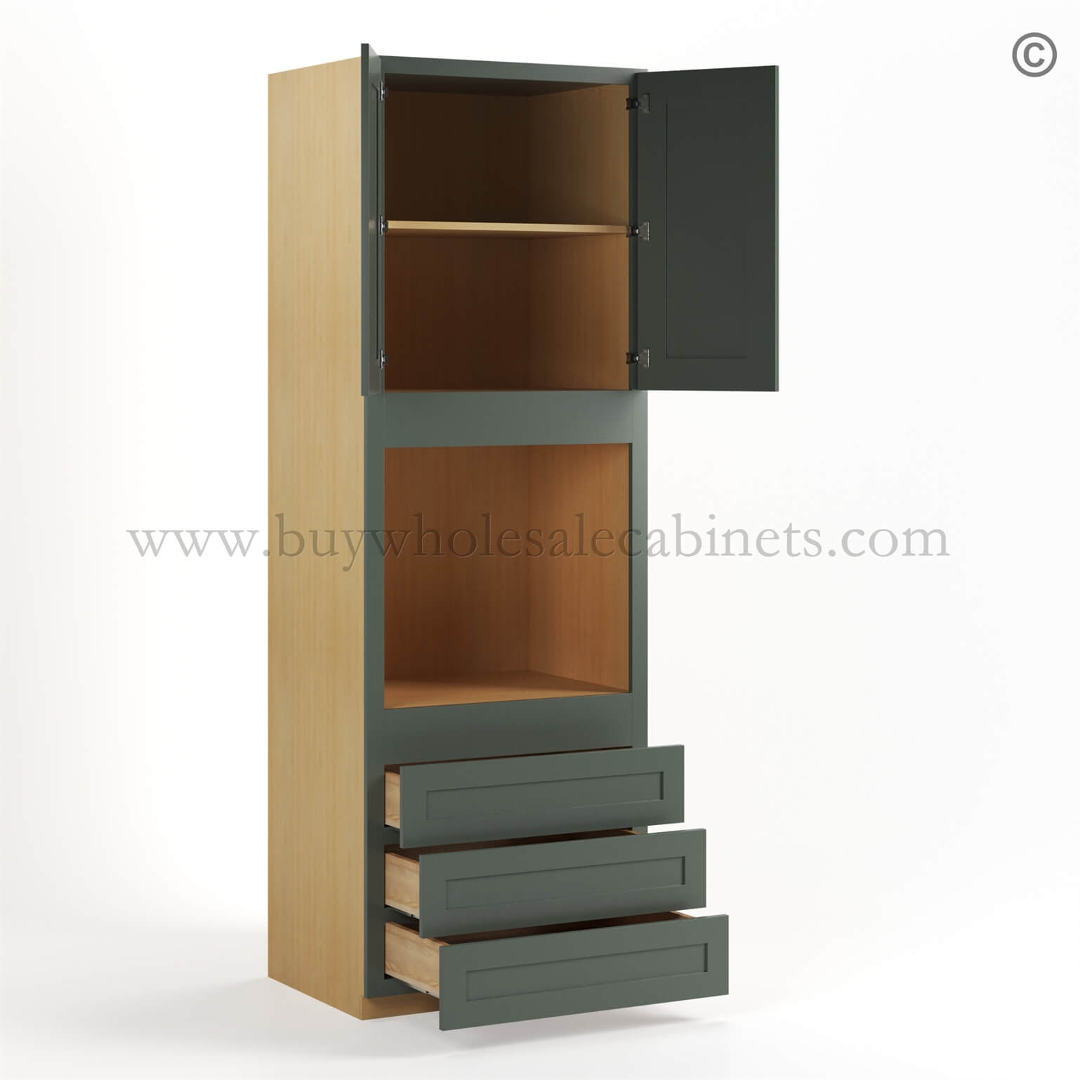 Our Green Shaker 30″ W Oven Pantry Cabinet is available in 3 sizes.