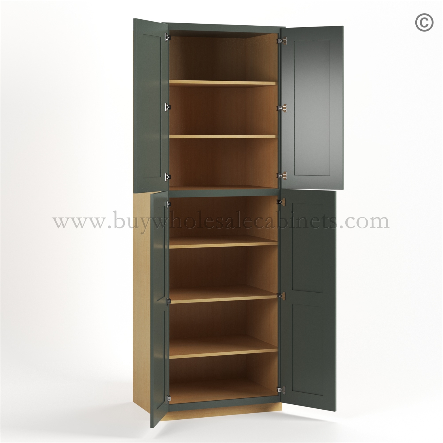 Our Green Shaker 30″ W Utility Pantry Cabinet is available in 3 sizes.