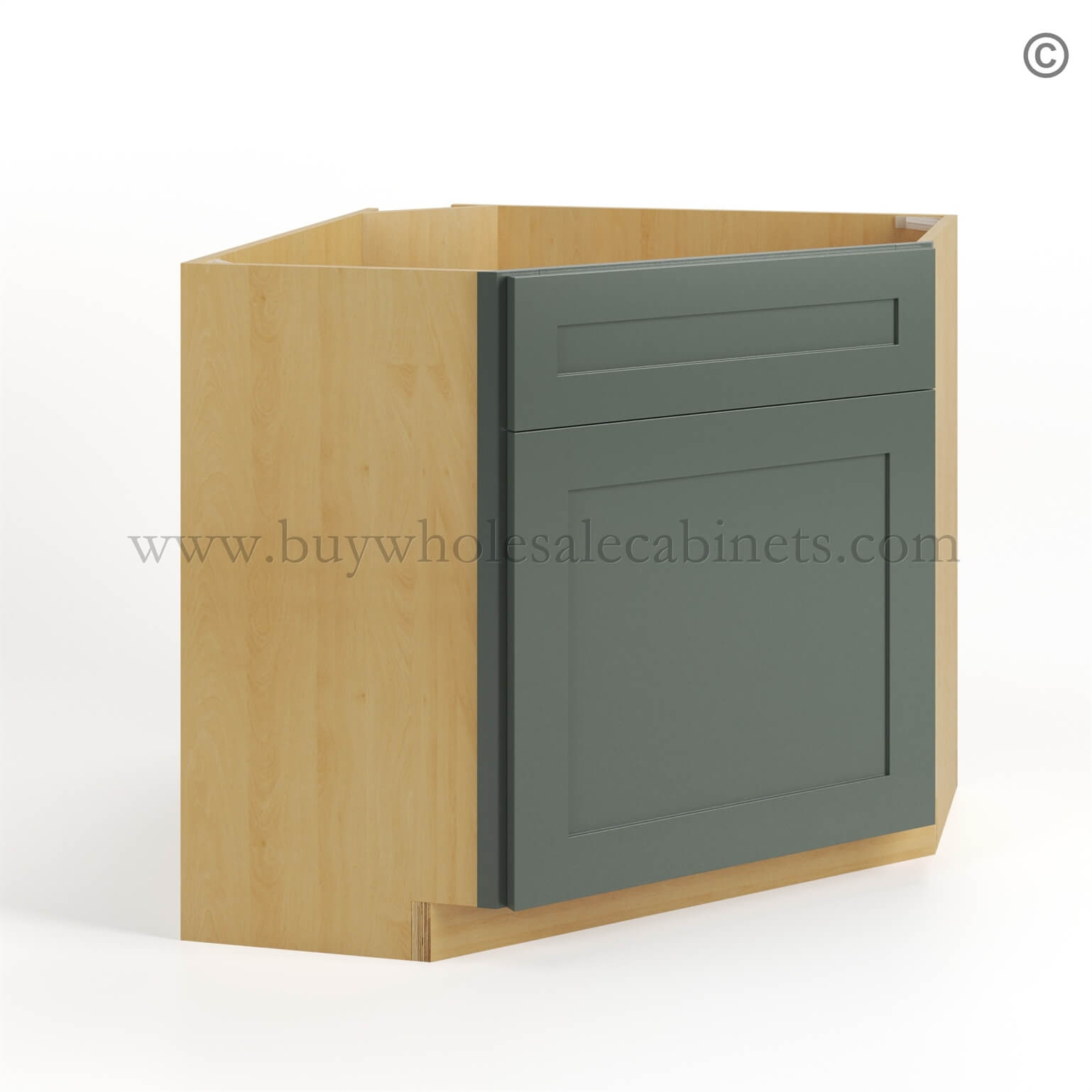 Green Shaker Corner Sink Base Cabinet is 34.5″ tall, 36″ long, and available in 36″ wide. This cabinet Green will fit perfectly in your kitchen or bathroom. The brilliant shade of shaker green cabinet will make your rooms exude modernity and quality.
