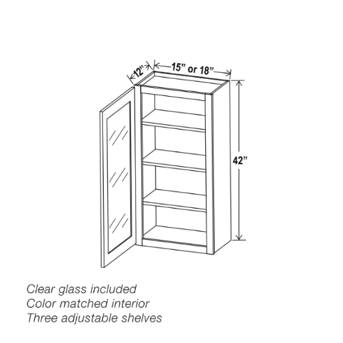 Our Black 42 H Single Door Wall Cabinet with Glass Door is 42″ in height and available in 2 widths (15″, 18″). This cabinet Black will fit perfectly in your kitchen or bathroom. The brilliant shade of Black cabinets will make your rooms exude modernity and quality.
