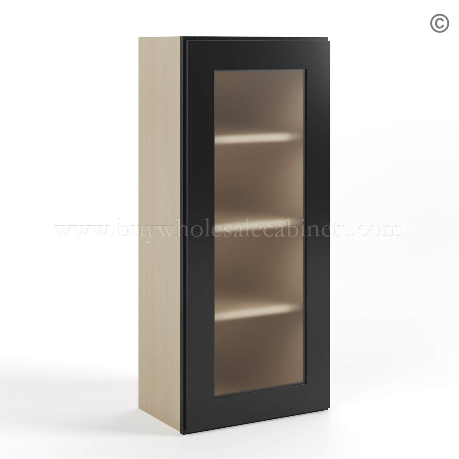 Buy Wholesale Cabinets Black Shaker 42″ H Single Door Wall Cabinet with Frosted Glass Door is available in 2 sizes.