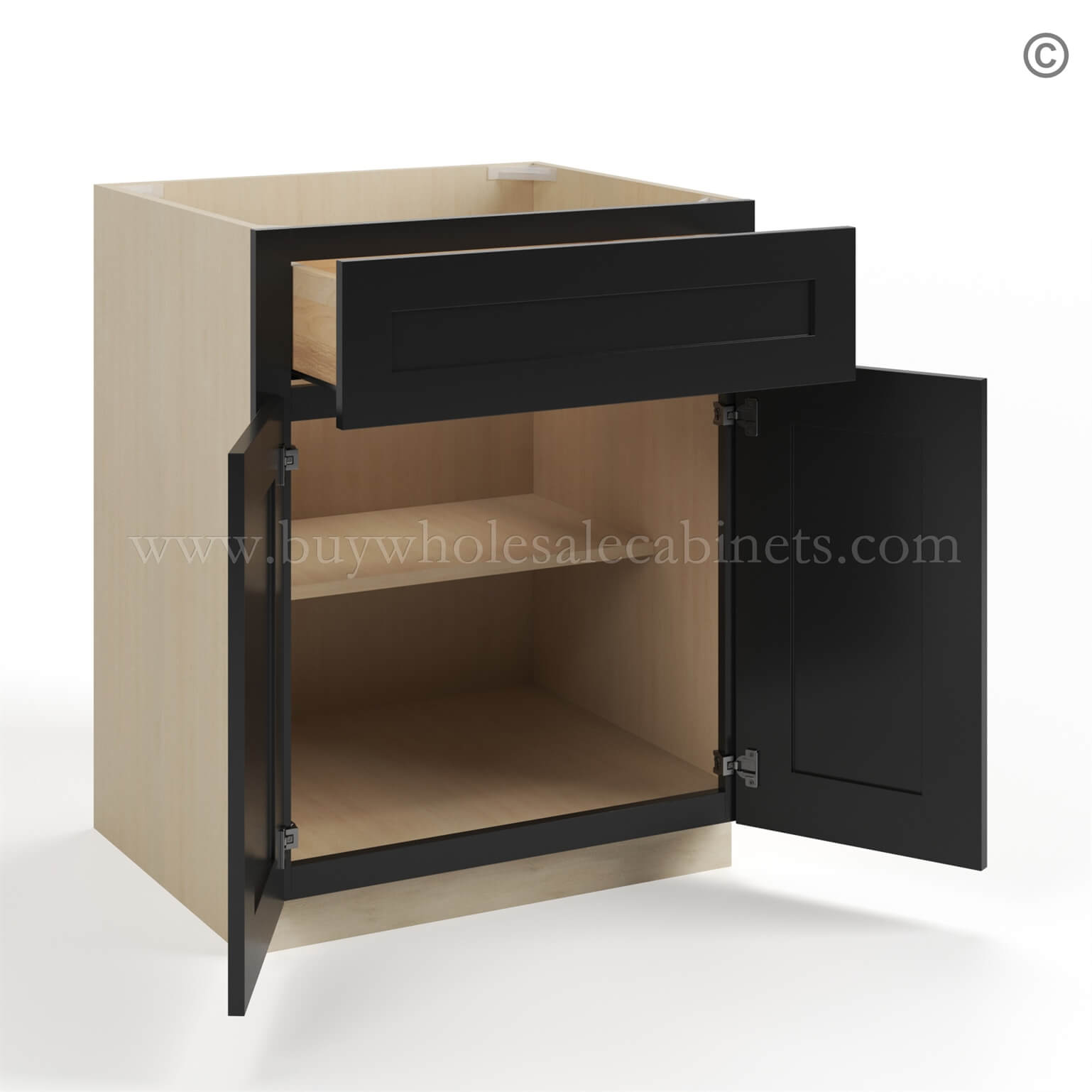 Black Shaker Base Cabinet with Double Doors & Single Drawer