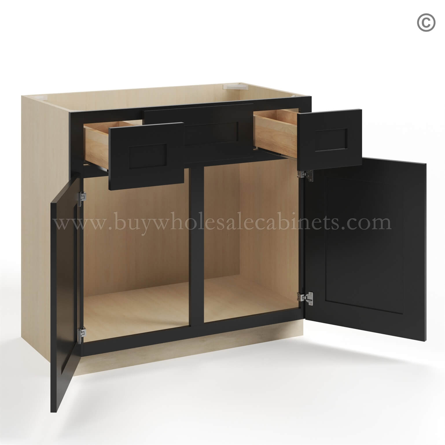 Our Black Shaker Vanity Combo Cabinet is 34.5″ Tall, 21″ Deep, and available in 3 widths (36″, 42″, 48″). This cabinet features 2 drawers and 2 doors. This cabinet Black will fit perfectly in your kitchen or bathroom. The brilliant shade of shaker Black cabinet will make your rooms exude modernity and quality.