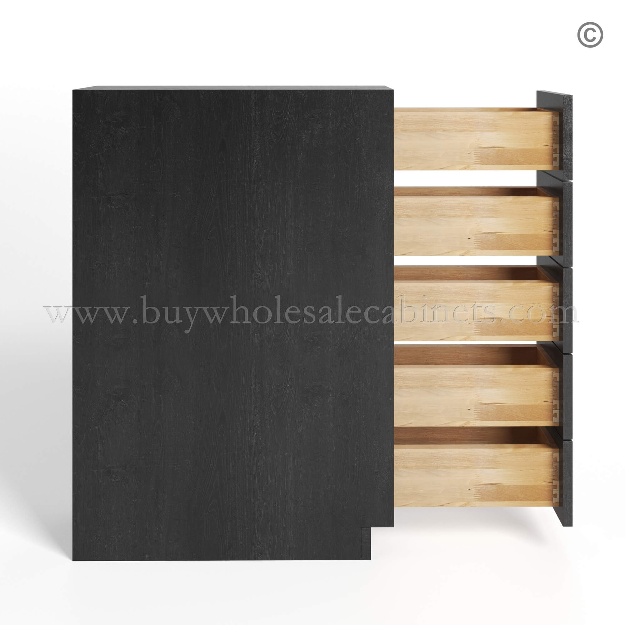 Our RTA Charcoal Black Shaker cabinets are finished with a high quality stain and the side panels are finished.