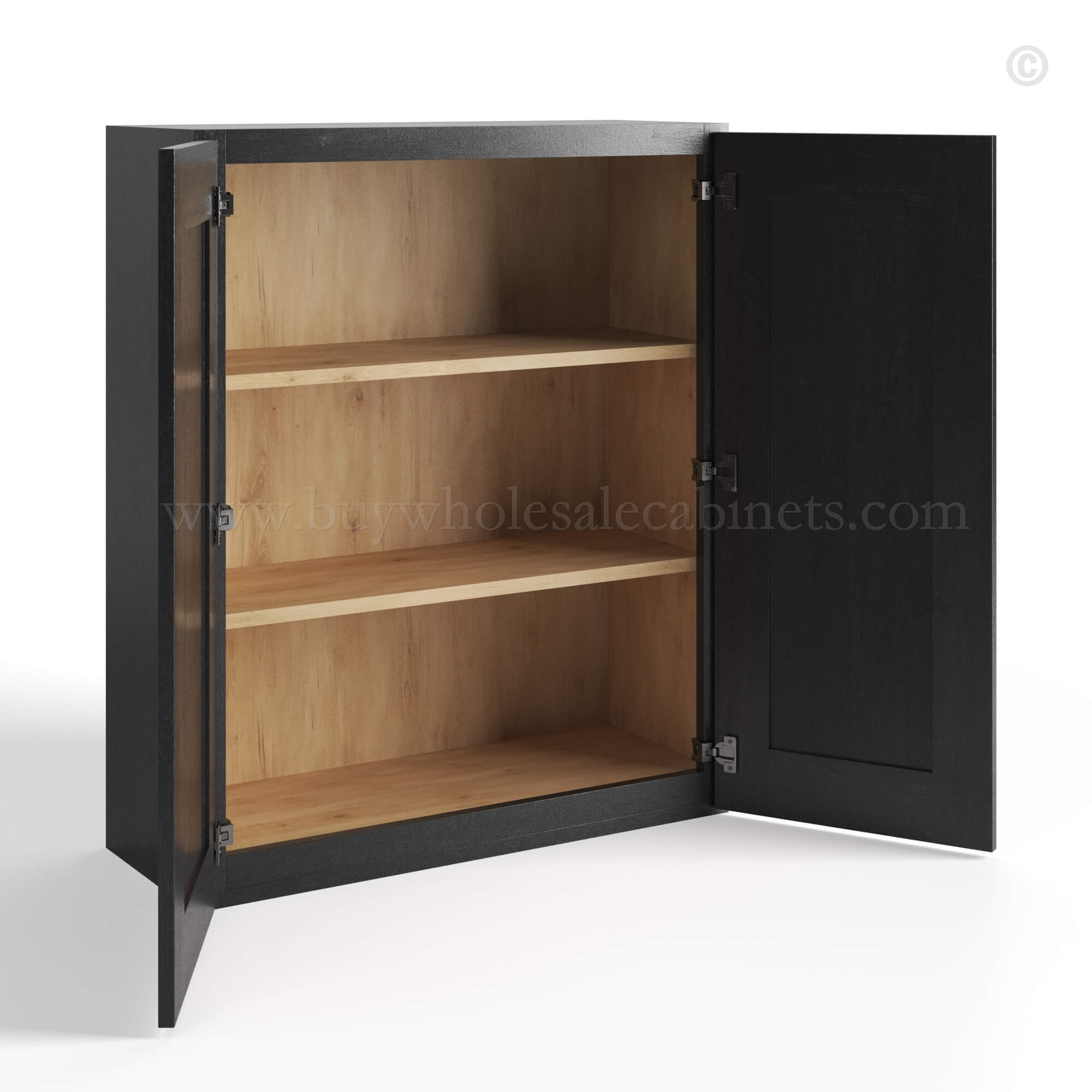 Charcoal Black Shaker Double Door Wall Cabinets 30H