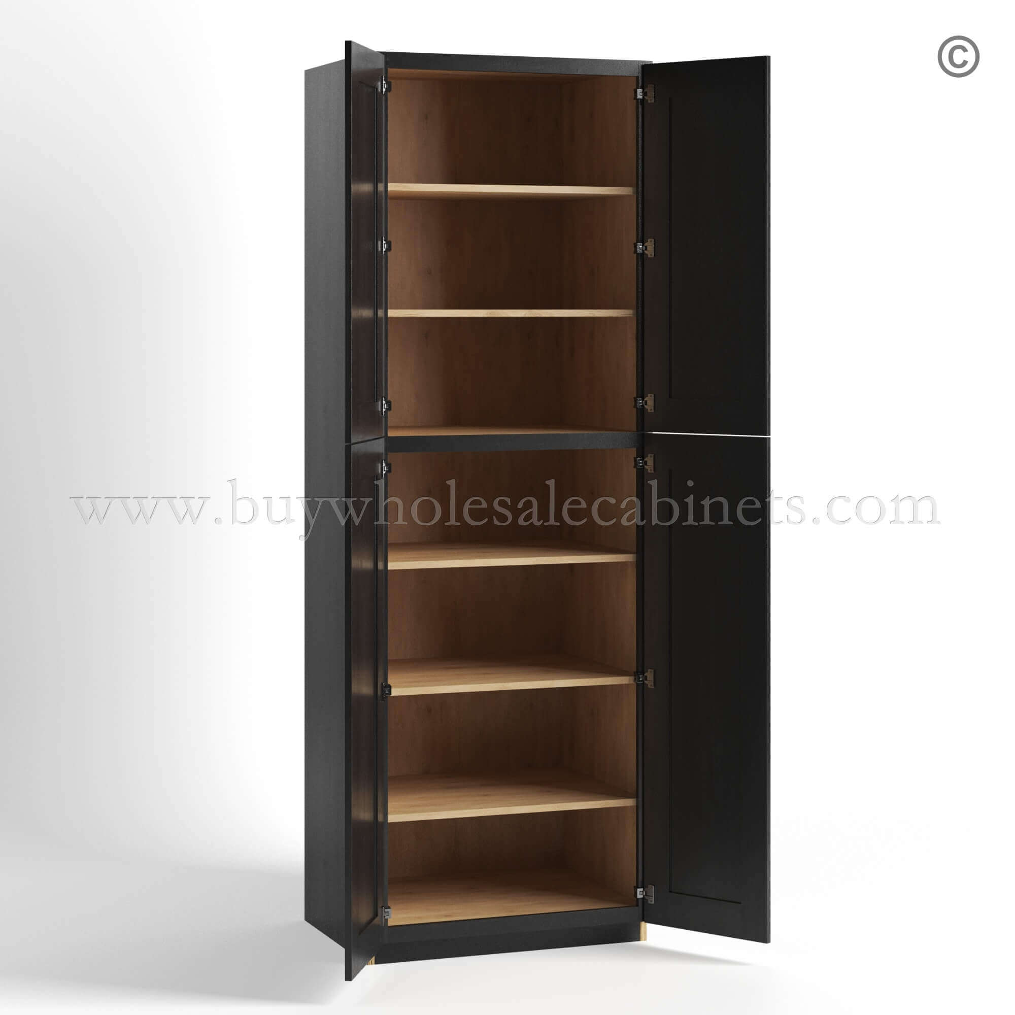Charcoal Black Shaker Tall Pantry Cabinet 2 Doors