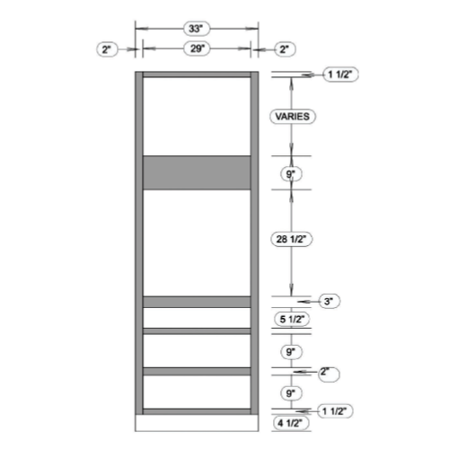 33"W x 24"D x 84"H ,33"W x 24"D x 90"H ,33"W x 24"D x 96"H |