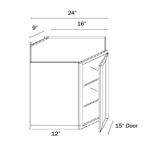 Charcoal Black Shaker Wall Diagonal Corner 24″W, 12″D