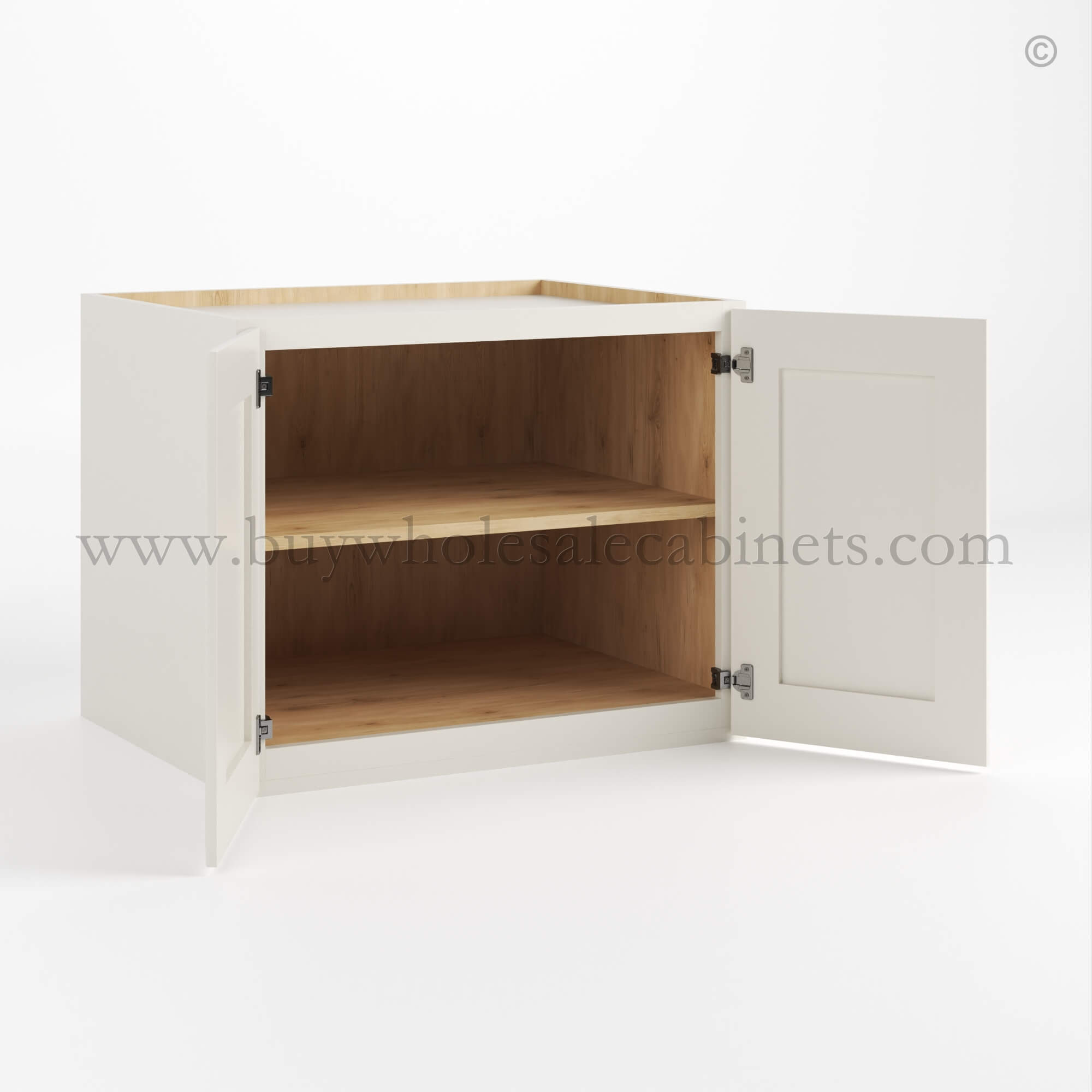 Designed for your convenience, this Raised Panel Charleston White wall cabinet features European soft-close hinges on it’s double doors, ensuring smooth and quiet operation every time. The cabinet includes one adjustable shelf.