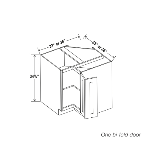 Our Charleston White Raised Panel Easy Reach Base Cabinet is 34.5″ tall, and 33″ or 36″ in deep and wide, and features one bi-fold door.