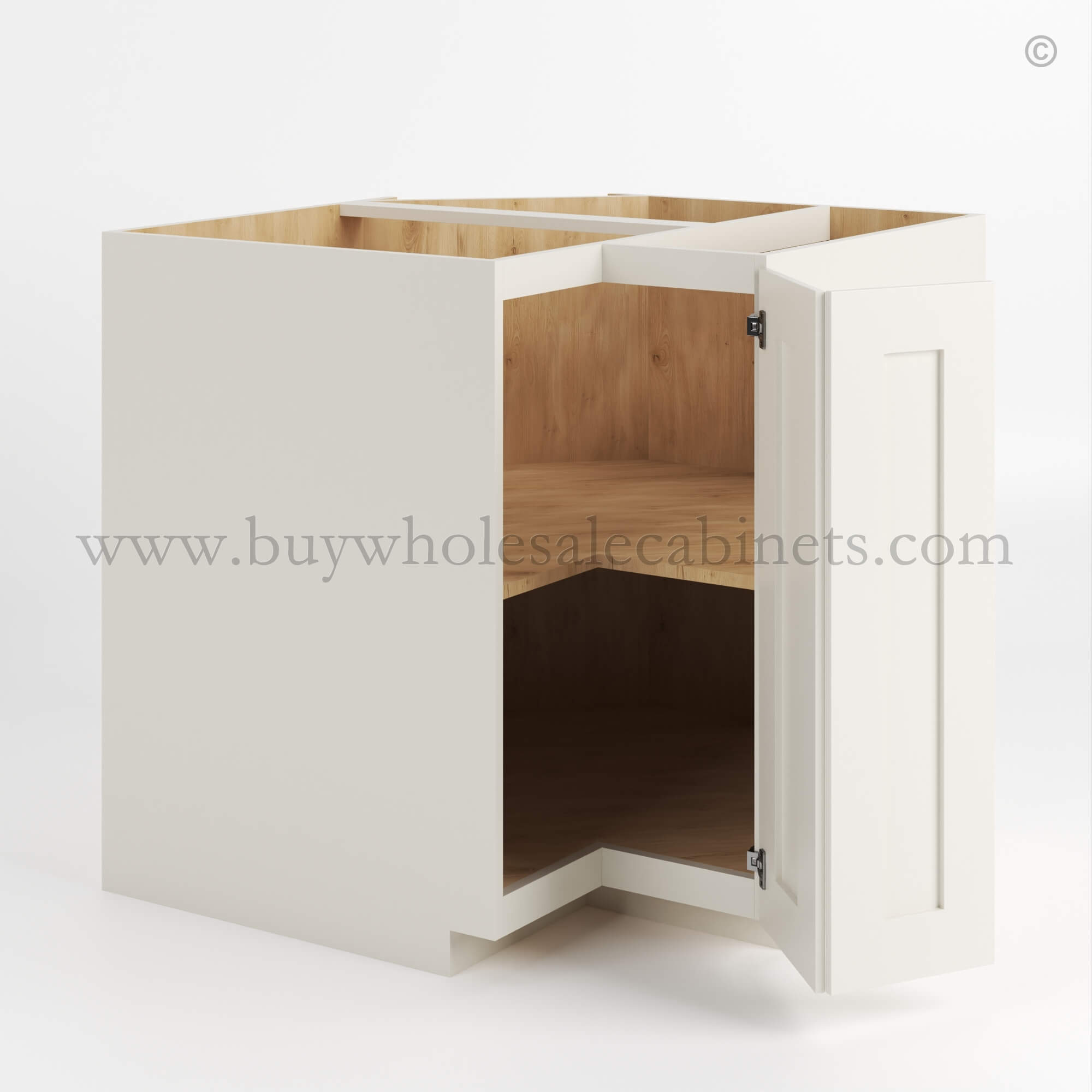 Designed for your convenience, this Raised Panel Charleston White base cabinets features European soft-close hinges that are interchangeable, ensuring smooth and quiet operation every time on it’s bi-fold door.