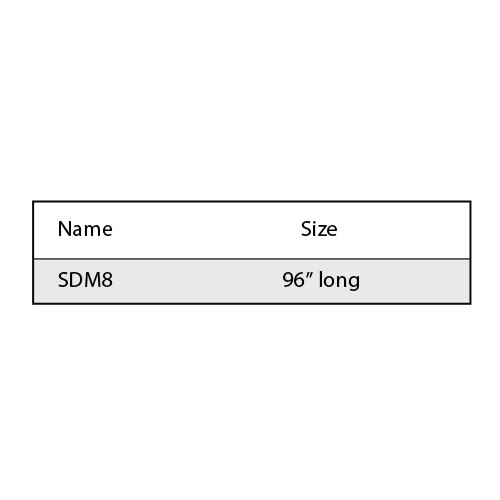 3/4"W x 1/4"D x 96"H |