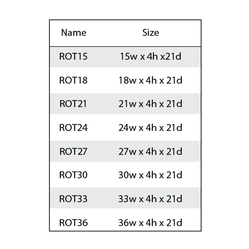 11"W x 21"D x 4"H ,14"W x 21"D x 4"H ,17"W x 21"D x 4"H ,20"W x 21"D x 4"H ,23"W x 21"D x 4"H ,26"W x 21"D x 4"H ,29"W x 21"D x 4"H ,32"W x 21"D x 4"H |