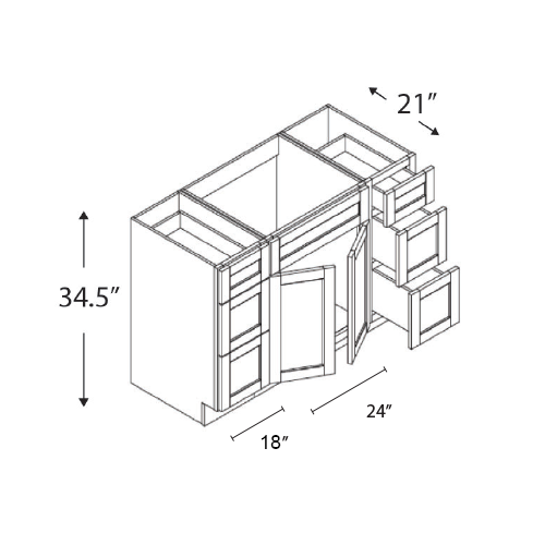 Box Construction: 1/2″ A-Grade Plywood with metal L bracket reinforcements for base cabinets