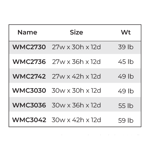 27"W x 12"D x 30"H ,27"W x 12"D x 36"H ,27"W x 12"D x 42"H |