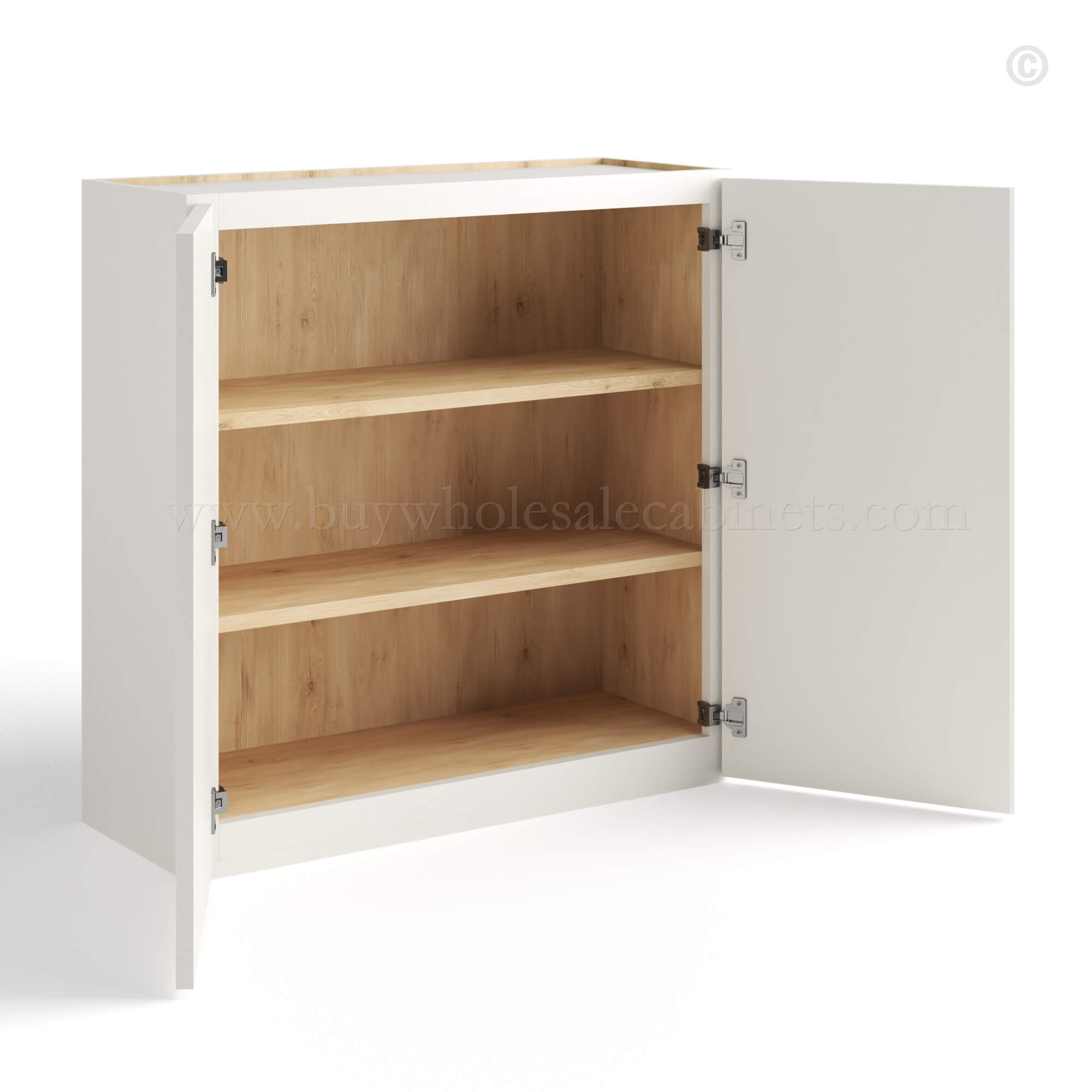 Dove White Slim Shaker 30″W Double Door Wall Cabinet whit Glass Doors