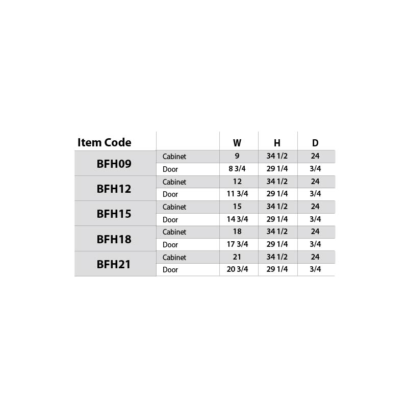 12"W x 34-1/2"H x 24"D ,15"W x 34-1/2"H x 24"D ,18"W x 34-1/2"H x 24"D ,21"W x 34-1/2"H x 24"D ,9"W x 34-1/2"H x 24"D |