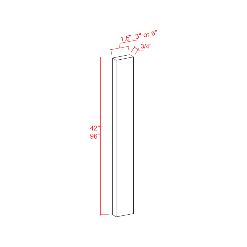1.5"W x 96"H x 3/4"D ,3"W x 96"H x 3/4"D ,6"W x 96"H x 3/4"D |