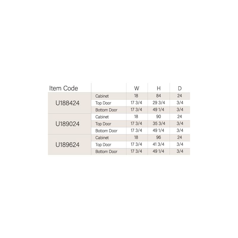 18"W x 84"H x 24"D ,18"W x 90"H x 24"D ,18"W x 96"H x 24"D |