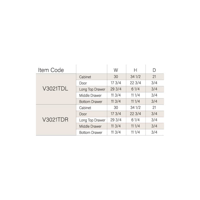 V3021TDR: 30” Combo w Drawers Right