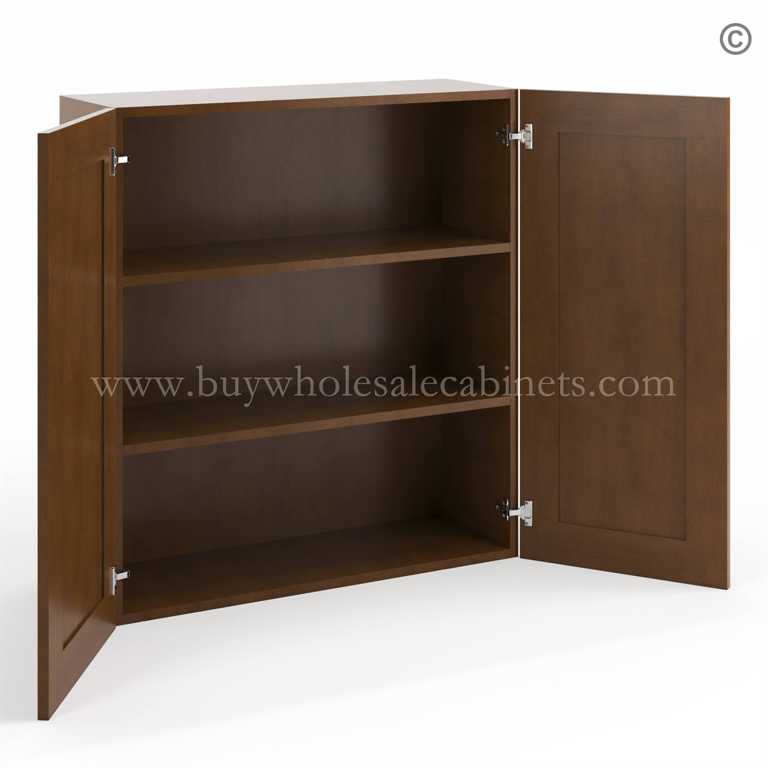 Frameless Classic Chestnut 36″ Tall Wall Cabinet – 2 Doors 2 Shelves