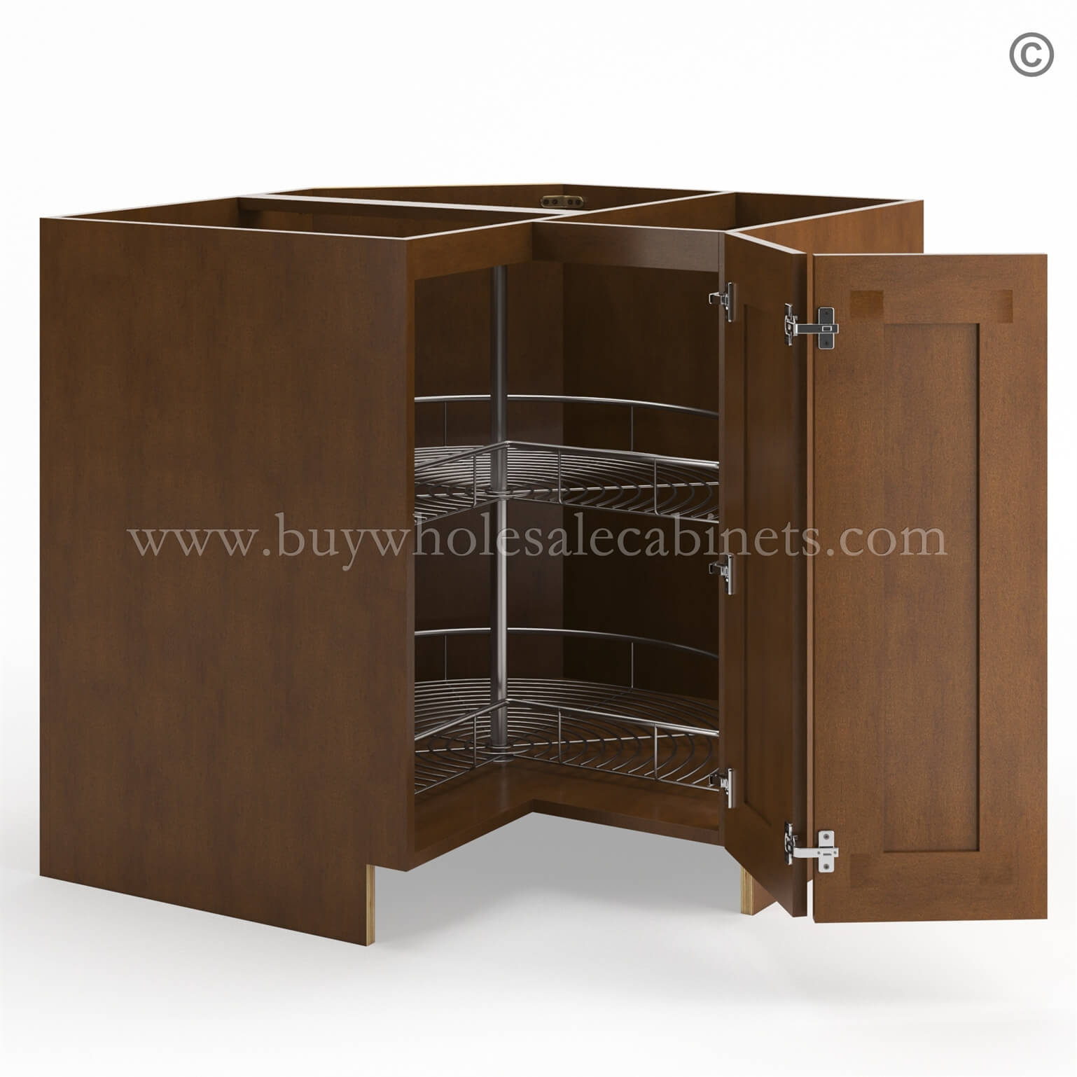 Frameless Classic Chestnut Base Cabinet With Metal Lazy Susan, Folding Doors