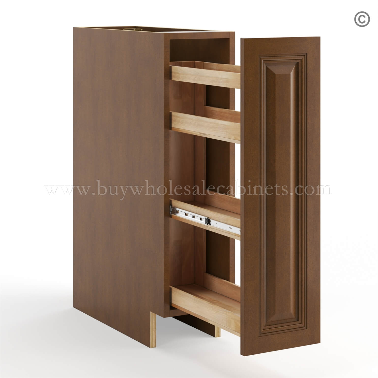 Frameless Classic Chestnut Base Spice Rack Pull Out – 1 Full Height Door