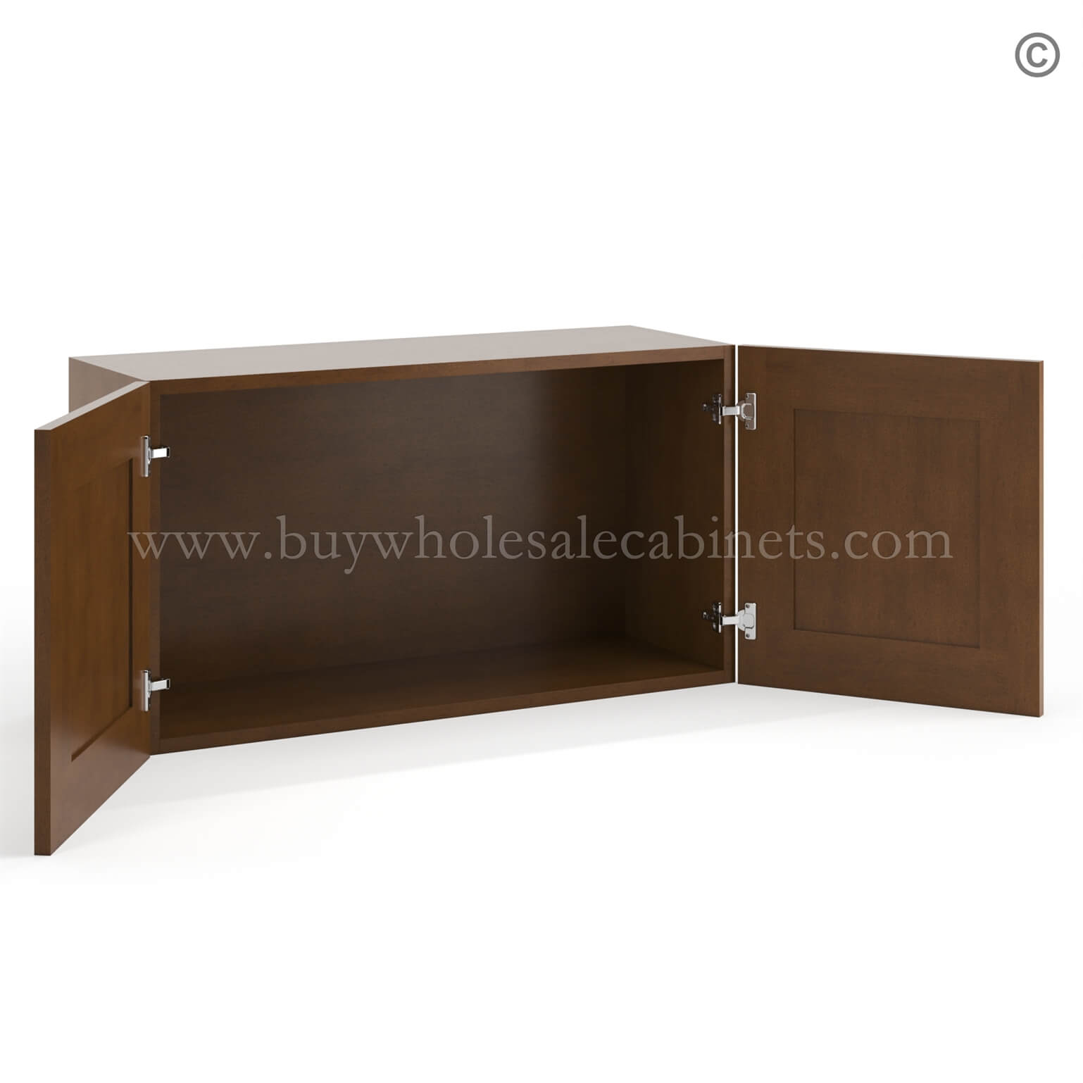 Frameless Classic Chestnut Deep Wall Cabinet – 2 Doors No Shelf – 12″D, 24″W