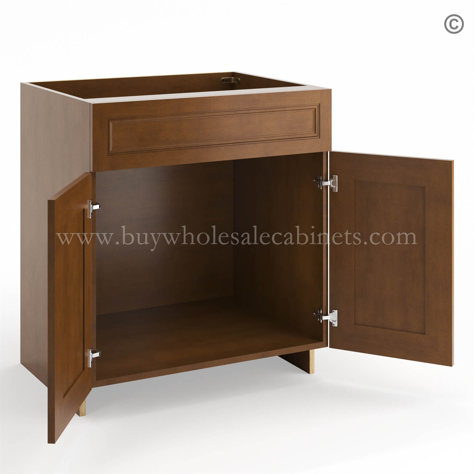 Frameless Classic Chestnut Sink Base Cabinet – 2 Doors & 1 False Drawer