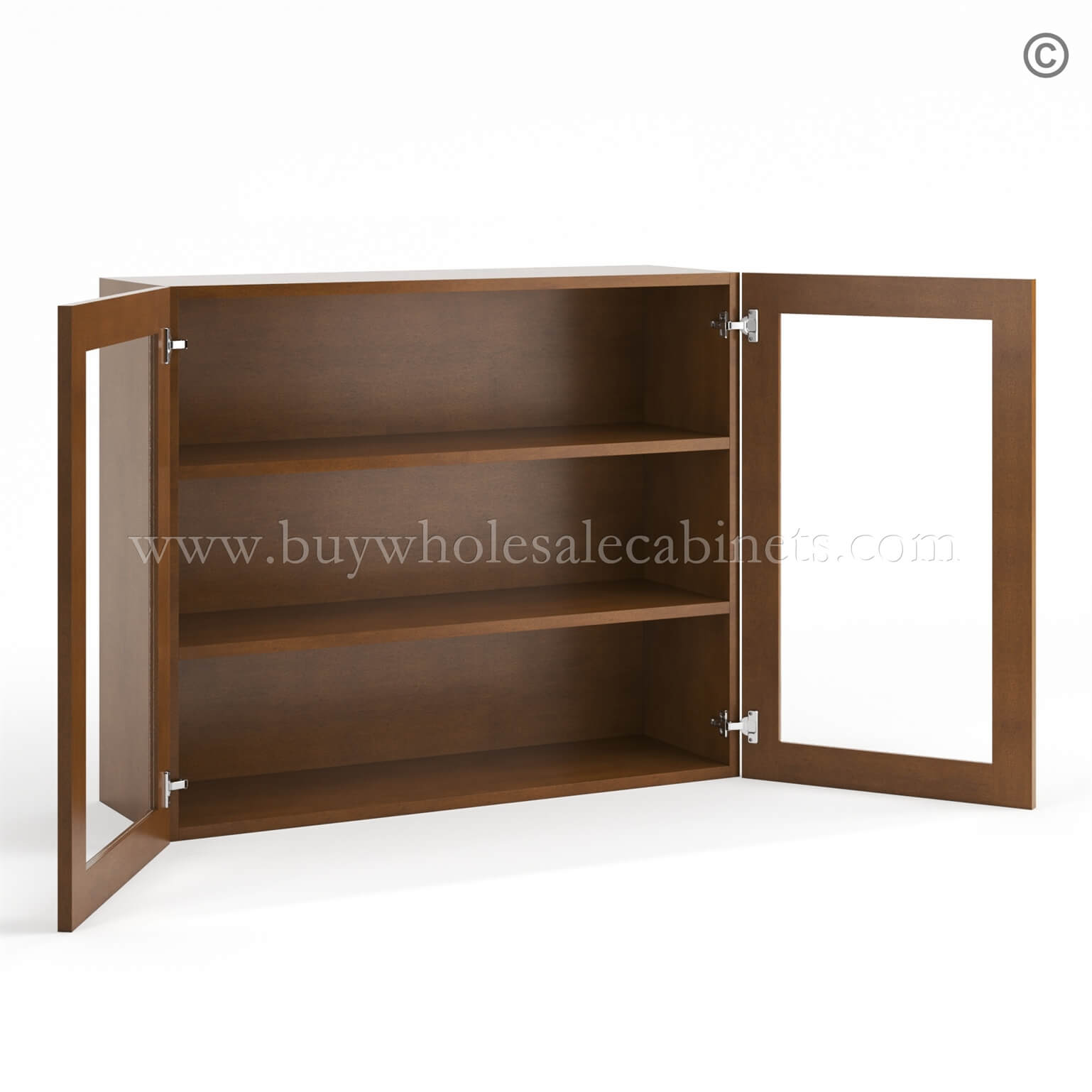 Frameless Classic Chestnut Wall Mullion Door 30″H – 2 Door 2 Shelves – Glass And Clips Not Included.