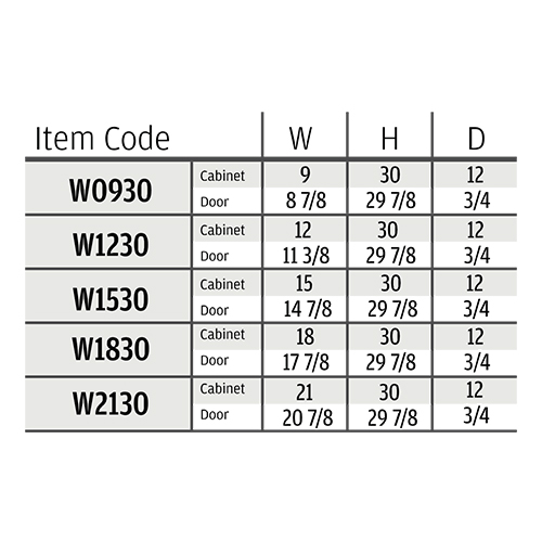 12"W x 30"H x 12"D ,15"W x 30"H x 12"D ,18"W x 30"H x 12"D ,21"W x 30"H x 12"D ,9"W x 30"H x 12"D |