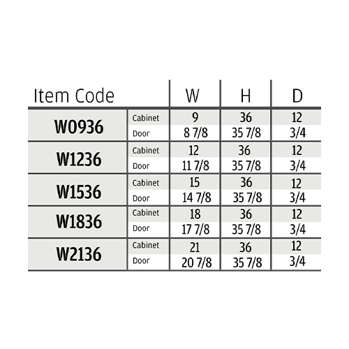 12"W x 36"H x 12"D ,15"W x 36"H x 12"D ,18"W x 36"H x 12"D ,21"W x 36"H x 12"D ,9"W x 36"H x 12"D |