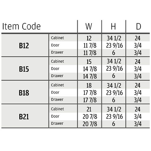 12"W x 34.5"H x 24"D ,15"W x 34.5"H x 24"D ,18"W x 34.5"H x 24"D ,21"W x 34.5"H x 24"D |