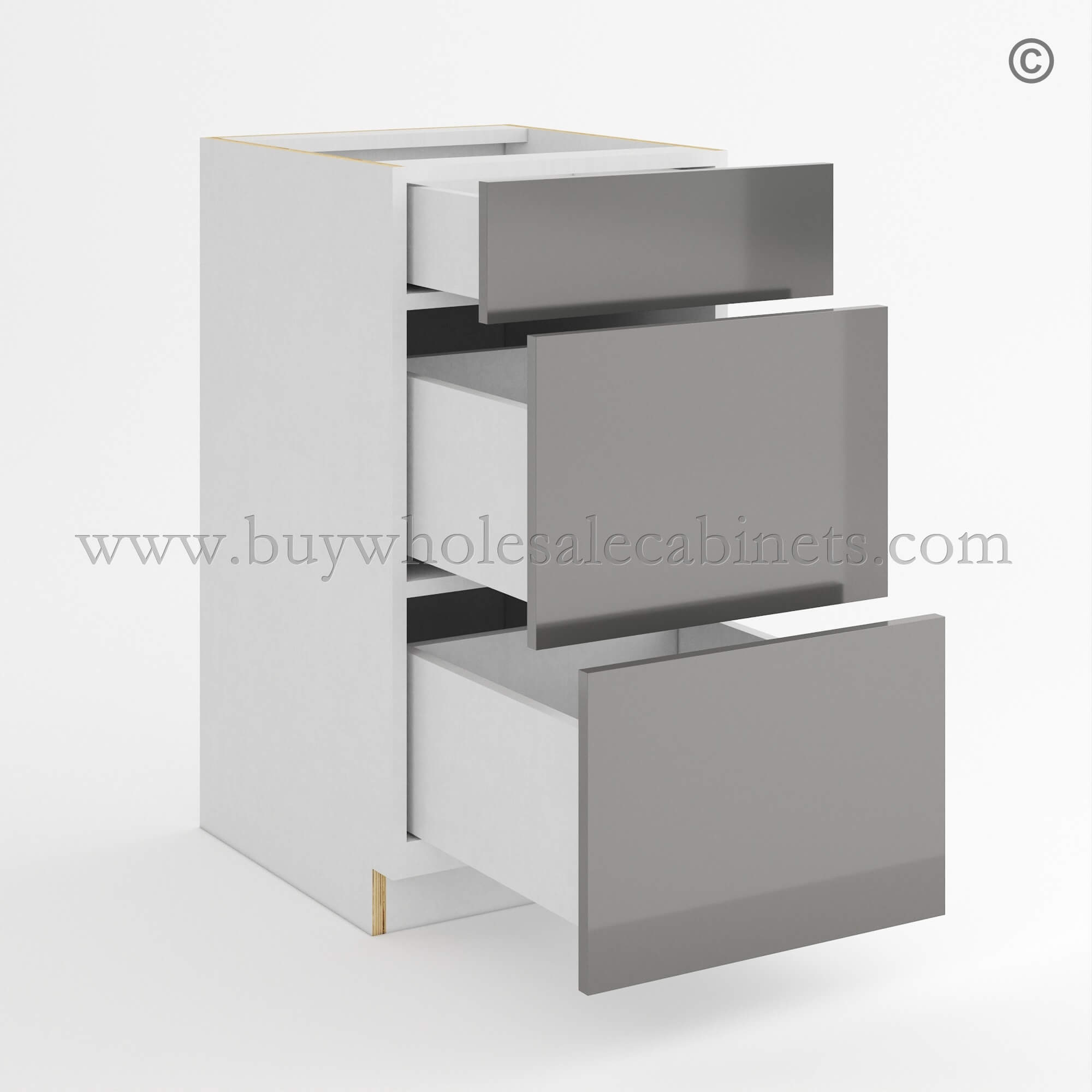 Order the Frameless Gloss Gray Three Drawer Base Vanity Cabinet and furnish the kitchen with the best selection of RTA cabinets!