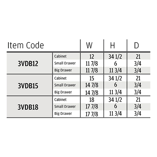 12"W x 34 1/2"H x 21"D ,15"W x 34 1/2"H x 21"D ,18"W x 34 1/2"H x 21"D |