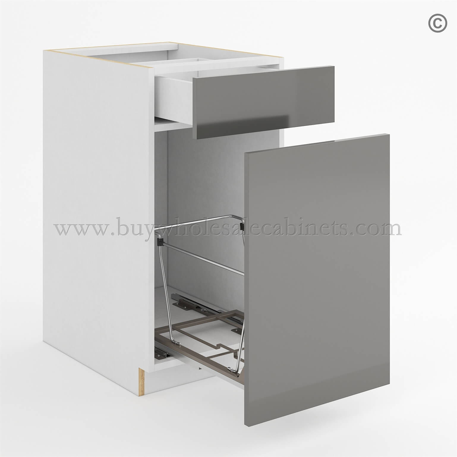 Order the Frameless Gloss Gray Trash Base Cabinet and furnish the kitchen with the best selection of RTA cabinets!