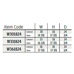 30"W x 18"H x 24"D ,33"W x 18"H x 24"D ,36"W x 18"H x 24"D |