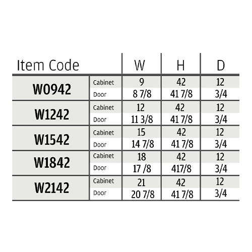 12"W x 42"H x 12"D ,15"W x 42"H x 12"D ,18"W x 42"H x 12"D ,21"W x 42"H x 12"D ,9"W x 42"H x 12"D |