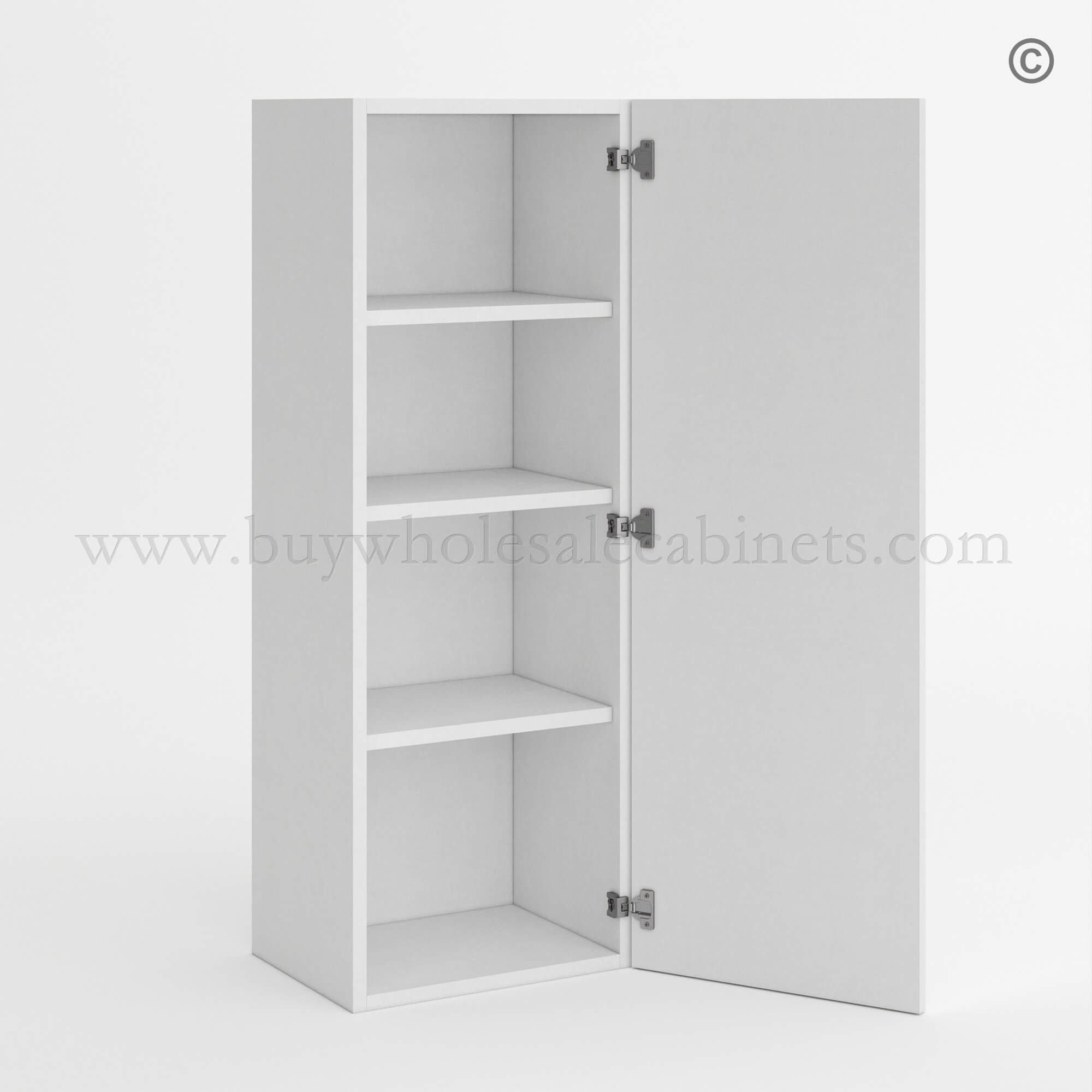 This RTA cabinet frameless white 42H single door wall will complete your kitchen! Design your perfect kitchen and check out our selection of Frameless Gloss White Cabinets.