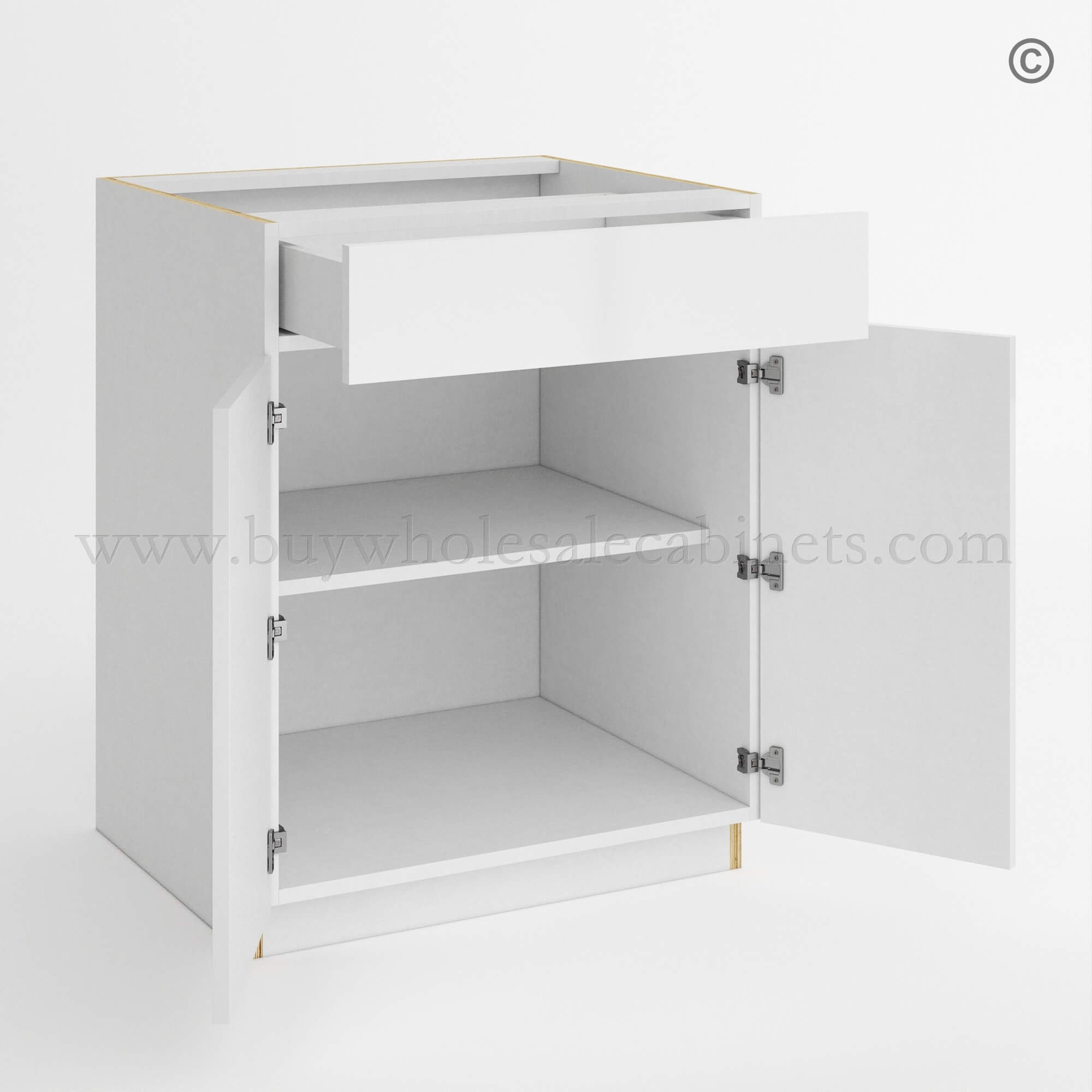 Order the Frameless Gloss White Base Cabinet Double Door and Single Drawer and furnish the kitchen with the best selection of RTA cabinets!