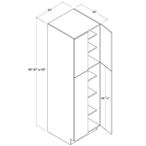 This RTA cabinet frameless white tall pantry with 4 doors will complete your kitchen! Design your perfect kitchen and check out our selection of Frameless Gloss White Cabinets.
