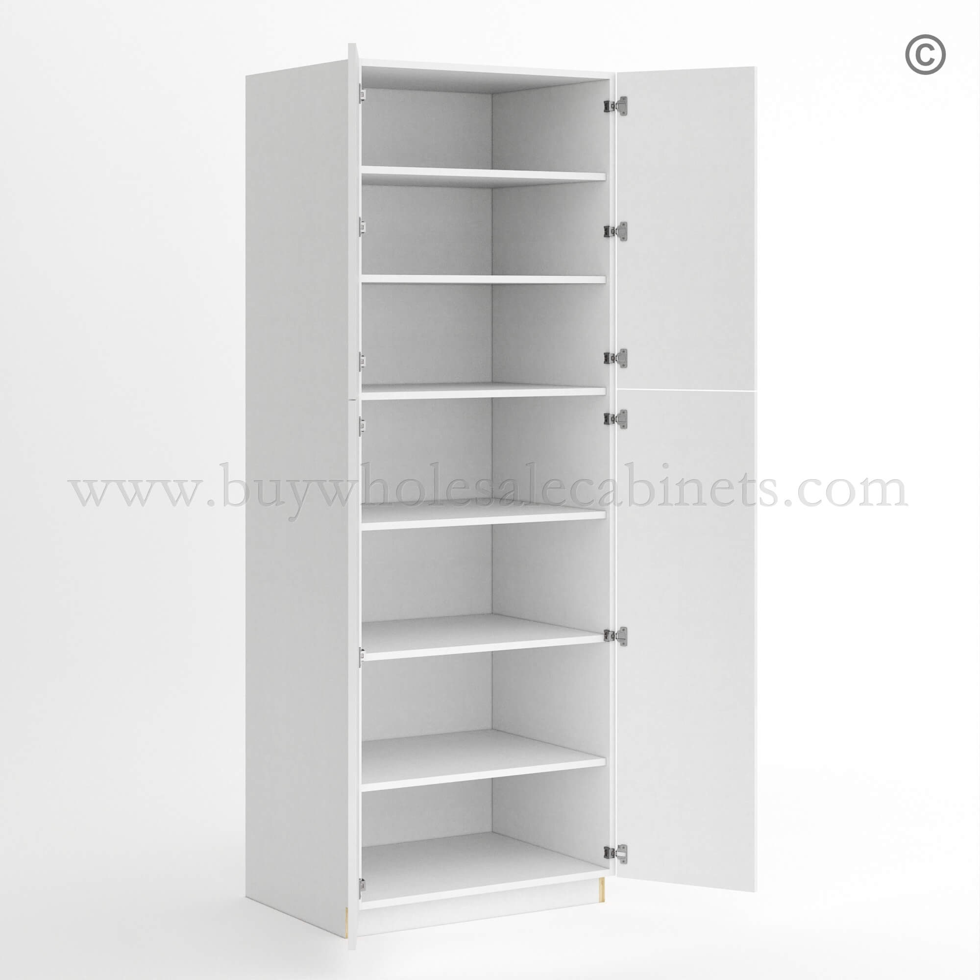 Order the Frameless Gloss White Tall Pantry Cabinet with 4 Doors and furnish the kitchen with the best selection of RTA cabinets!