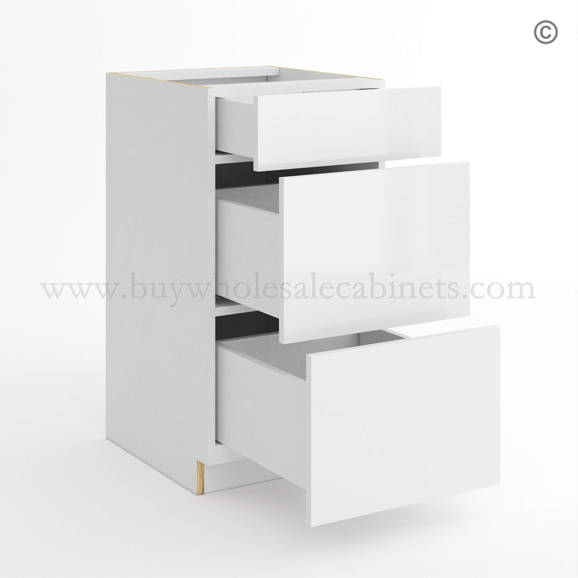 Order the Frameless Gloss White Three Drawer Base Vanity Cabinet and furnish the kitchen with the best selection of RTA cabinets!