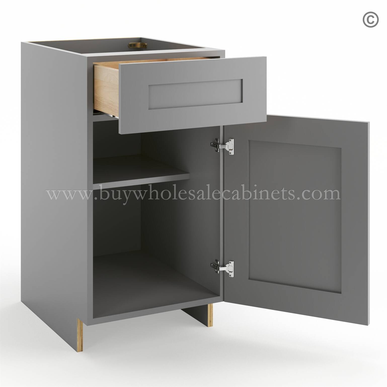 Frameless Graphite Gray Base Cabinet – 1 Drawer, 1 Door, 1 Shelf