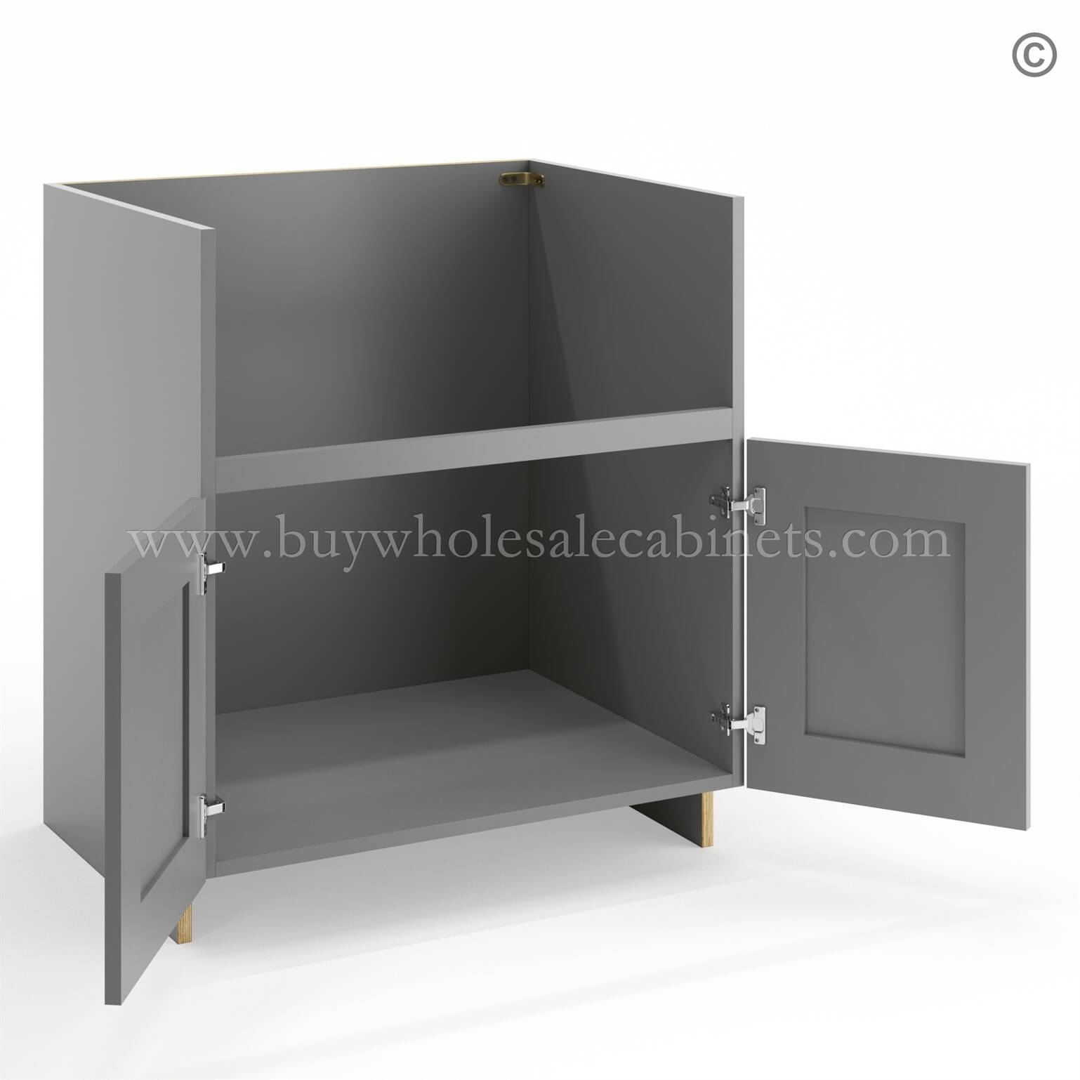 Frameless Graphite Gray Farm Sink Base Cabinet – 2 Doors