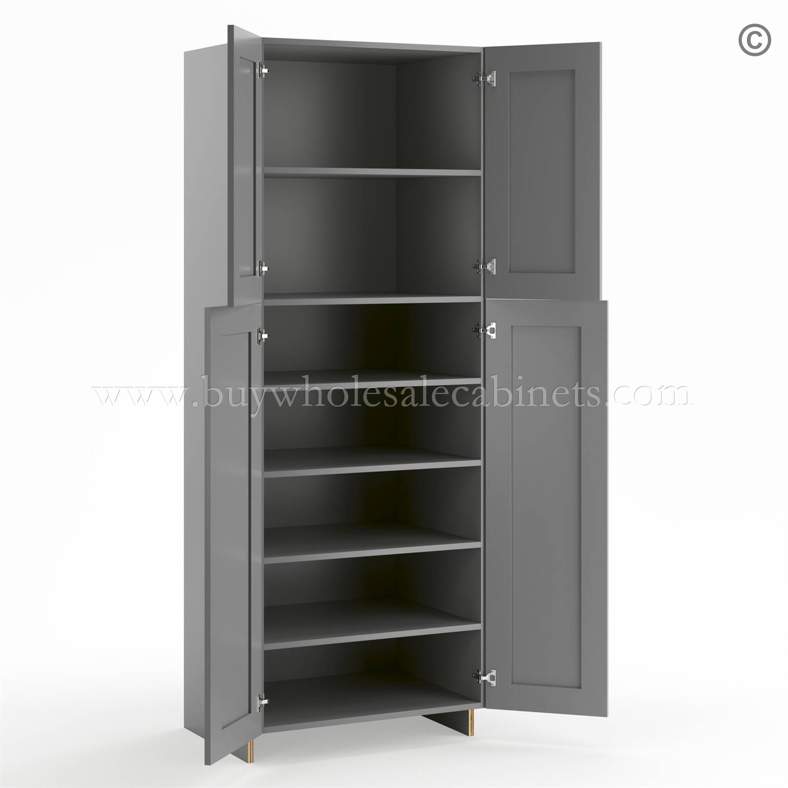 Frameless Graphite Gray Pantry Cabinet – Double Doors 24″W