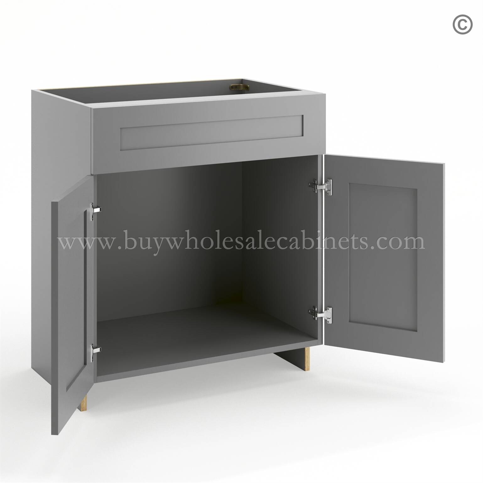 Frameless Graphite Gray Vanity Sink Base Cabinet – 2 Doors And 1 False Drawer